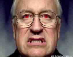 A smiling, but always sinister looking former United States Vice President, Dick Cheney.