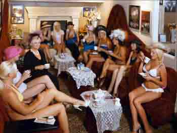Herr Bökenbanger with his two new prostitute girlfriends at the hotel brothel in Vienna.
