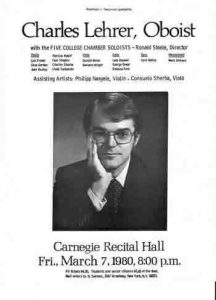 In spite of Dr. “Chick” Lehrer’s proclivity to stage a sometimes less than well thought through ‘practical joke’ on others, Dr. “Chick” Lehrer was a highly regarded and respected member of the UMASS-Amherst music faculty. Besides being a wonderfully engaging music historian and exceptional performer on both Oboe and English Horn, Dr. “Chick” Lehrer was also a devoted music educator. Dr. “Chick” Lehrer developed the “The New Barret Oboe Method” as well as other well received pedagogical methods.