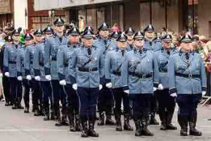 Massachusetts State Police wearing uniforms whose imposing design was actually inspired by the WWII German SS uniforms.