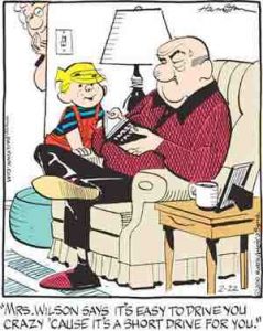“Dennis the Menace” – American newspaper cartoon character antagonizing his neighbor, Mr. Wilson.
