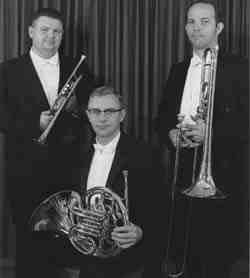 Professor Walter Chesnut UMASS-Amherst Trumpet Instructor with Music Department Brass Trio Members John Jenkins on French Horn and Larry Weed on Trombone circa 1968.