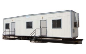 These construction site quality office trailers were probably 10 feet wide and 32 feet long.