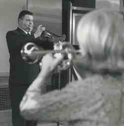 Walter Chesnut teaching an ‘Applied Trumpet Class’ to instrumental music education majors who did not play trumpet. Circa 1968